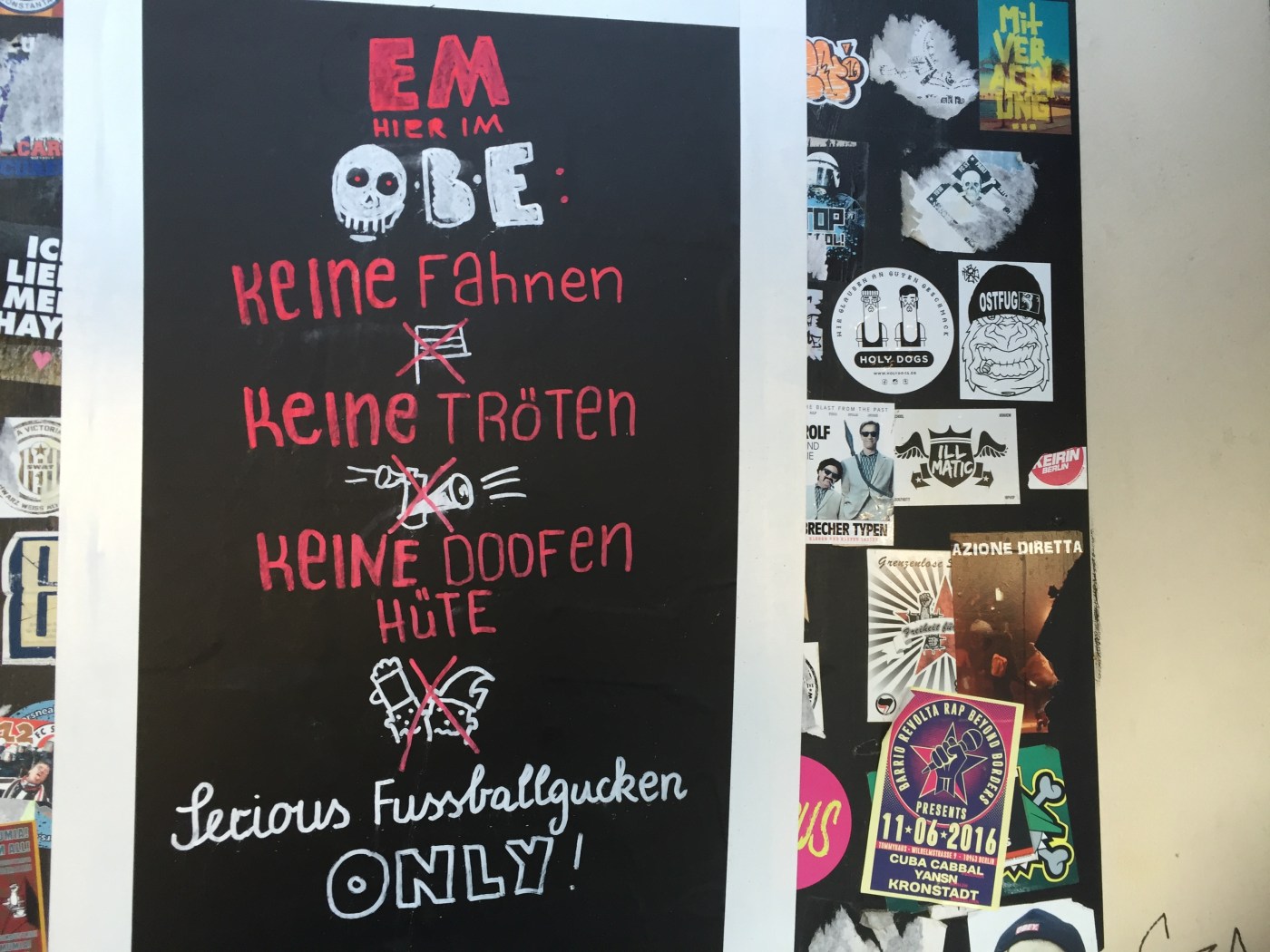 Eine Alternativkneipe in der Köpenicker Straße in Berlin setzt demgegenüber weithin sichtbar auf