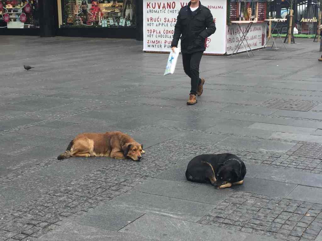 Diese Hunde zum Beispiel, die auf der Knez Mihajlova im Einkaufstrubel seelenruhig schlafen: