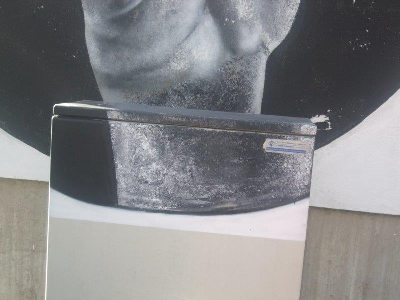 Die dort auf einer Wand abgebildete Hand findet nämlich auf einem davor stehenden Schaltkasten ihre Fortsetzung, so dass dieser Kasten den Passanten von der anderen Seite der Straße nicht den Blick auf das Bild stören kann.