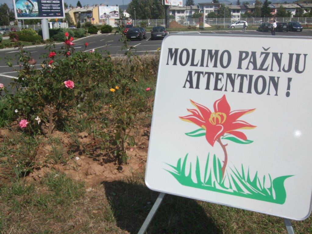 Heute wird man, zumindest am Flughafen in Sarajevo, mit einem plakativen Schild auf Blumen hingewiesen: