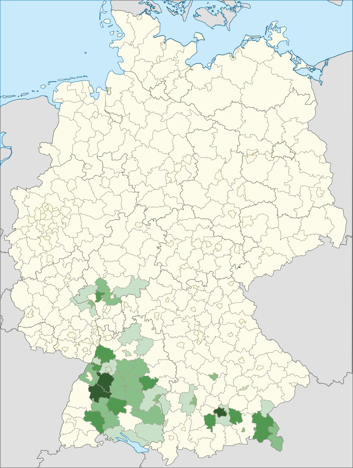 - Dunkelgrün: häufigste ausländische Staatsangehörigkeit in diesem Kreis
