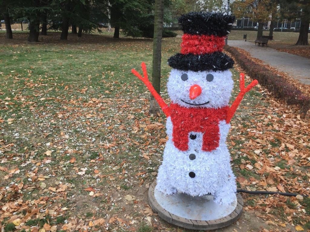 Dann sahen wir jedoch auch den Schneemann in ähnlich mißlicher Lage und verstanden: Das ist keine Demo, sondern eine Dekoration, für einen Winter, der sich noch nicht sehen lassen hat.