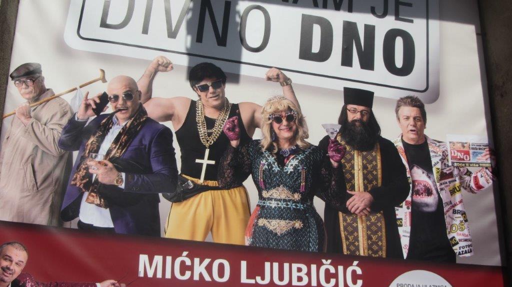 Mit diesem heilen Serbien-Bild scheint man jedoch keine Serbinnen und Serben in das Theater zu locken können. Den das Plakat, das für die Theateraufführung wirbt, zeichnet ein ganz anderes Bild hier: Dort kommen auf eine Frau (die zudem von einem Mann gespielt wird), fünf Männer. Und: Keiner dieser Protagonsiten ist besonders sympathiererregend.