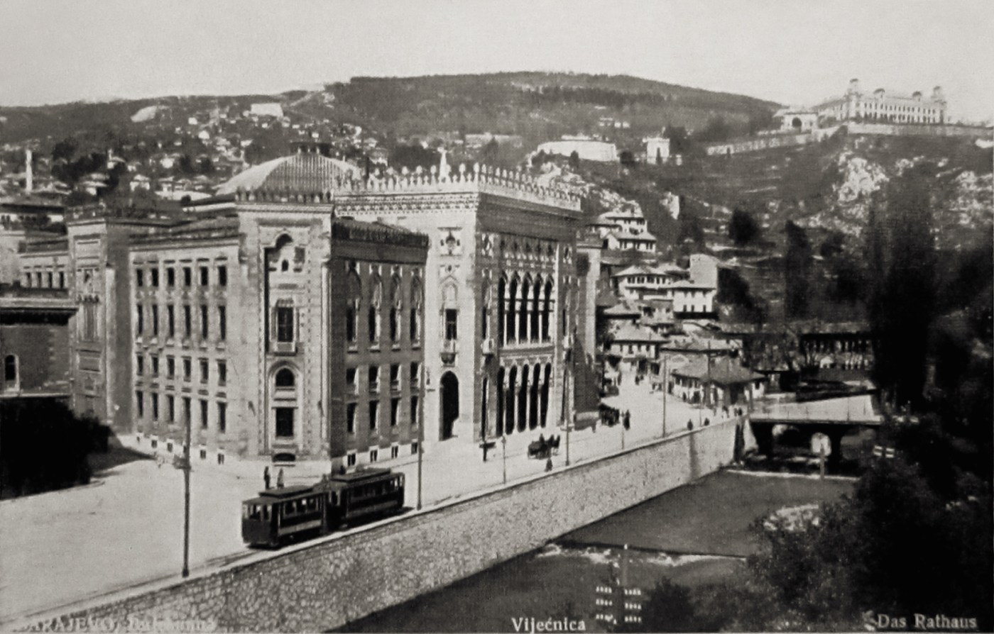 Sarajevo, phantastische Stadt, wo Orient und Okzident ihre Lippen küssend berühren, wo die Muselmanenfrauen in hellblauen oder bräunlich zebragestreiften Kattun gekleidet einhergehen, der als Rock faltig bis auf die Füße herabreicht, umd die Hüften mit einer Schnur gegürtet ist und Schultern, Arme und Brust und noch den ganzen Kopf umhüllt in einem einzigen Stück, dazu das Gesicht mit einem schwarzen Tuch maskenartig bis zum Kinn herauf verschleiert. Wo die Männer des Islam merkwürdige Hosen tragen, die unten eng das Bein umschließen; oben pluderweit sich bauschen und hinten einen spassigen Wippsack bilden, schaukelnd fast bis auf die Erde herab …